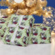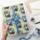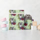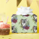 Urso coala giro sentado num membro da árvore com flores e folhas de eucalipto num pano de fundo verde