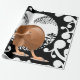 Uma ilustração vetorial de uma ave de Kiwi. O pássaro é enquadrado por uma lua de cheio como Kiwi é noturno. O fundo é Maori preto-e-branco, design de koru tradicional. Um exemplo de ave Aotearoa neozelandesa.