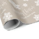O papel de embrulho de presente de Natal contém flocos de neve, caligrafia moderna, roteiro de Natal alegre e texto personalizado sobre fundo de papel kraft.