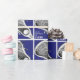 Embalagem de presente de Lacrosse com design de palito de lax e linha de aniversário feliz em fundo azul. Editar texto para adicionar o nome do jogador, treinador ou fã de esportes de equipe.