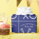 Embalagem de presente de lacrosse criativa com paus de lax e padrão de xo em fundo azul. Para personalizar o texto de edição para adicionar nome e, de outra forma, personalizar.