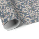 A playful pattern of lady bugs interweaving through daisies, featured in a blue color tone.