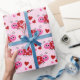Uma joia rosa e vermelha e um padrão de cor que embrulham o papel. Um design divertido para embrulhar presentes de aniversário de criança, presentes de chá de fraldas ou para Dia de os namorados.