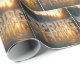 A palavra "PRIMAVERA" é feita em gelo, colocada sobre uma superfície congelada refletindo o brilho quente de um nascer do sol
