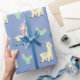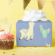 Teste padrão bonito do lama com o cacto atrás do fundo azul. O lama tem uma sela colorida bonito. Com um cacto que vem após um lama.