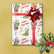 Uma preguiça-de-árvore adorável vestida de roupa vermelha e verde de Natal é a principal característica deste papel de embrulho de Natal para crianças. Junto com a preguiça de uma árvore, há um cheio estocado vermelho e verde listrado de doces, cana-de-açúcar e muitas estrelas de ouro. O texto vermelho claro diz "MERRY CHRISTMAS" e sua assinatura personalizada está em vermelho e verde correspondentes. Bonita para crianças e netos!