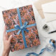 Papel De Presente Laranja-aquarela e flores marrons.