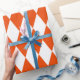 Um papel de embrulho projetado com um padrão brilhante de harlequina, cor de laranja e branco, em tamanho extra grande. Personalize a cor branca de uma forma fácil.