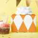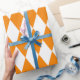 Papel de embrulho concebido com um padrão de harlequina cor de laranja e branca em dimensões extras grandes. Personalize a cor branca de uma forma fácil.