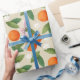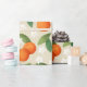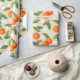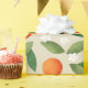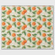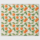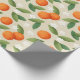 Papel De Presente Laranjas, Folhas Verdes e Flores Brancas