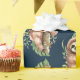 Papel de enrolamento com uma design de aquarela fofinha, com uma preguiça fofinha pendurada num galho arbóreo rodeado por folhas tropicais verdes. Fundo azul escuro.