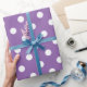 Papel de embrulhamento de padrões bolinhas roxo e branco de lavanda. Cor de fundo personalizada atrás do padrão polkadots branco. Presente bonito pontilhado para o Aniversário, Casamento, Chá de panela, aniversário ou presentes de Natal. Altere a quantidade para obter o preço mais barato por rolo. Papel de embrulho de impressão polkadotted elegante para homens, mulheres e crianças. Personalize o tamanho do ponto redondo para pequeno ou grande.
