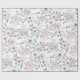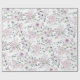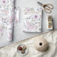 Este papel de empacotamento apresenta um padrão repetitivo de rosas de lavanda com a palavra Amor