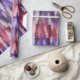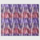 An illustration of layered pine trees arranged in horizontal bands, featuring cool violet, lavender, and pink shades.