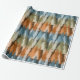 An illustration of layered pine trees arranged in horizontal bands, featuring cool blue, khaki, and orange shades.