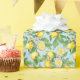 Este presente contém retratos aquosos de limões com sotaque floral branco contra fundo azul pálido.
