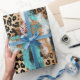 Papel De Presente Leopardo Negro Dourado Turquesa