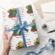Um desenho animado e fofo, vermelho e verde de gengibre (mulher), carta de biscoito de Papais noeis, papel personalizado de embrulho de Natal (Natal).