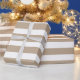 papier d'emballage, lignes blanches, lignes beiges, élégant, minimaliste, intemporel, cadeau, occasion spéciale, finition soignée.
