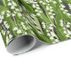 Um design de papel de embrulho inspirado pela bela flor em forma de sino, um campo de lírio branco macio do vale e caules e folhas verdes brilhantes.
