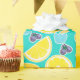 Esse padrão repetitivo apresenta limões, mirtilos e vários tipos de designs florais