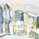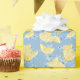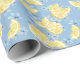 Papel De Presente Limões Fatiados e Flores em Aquarela Azul