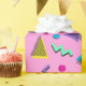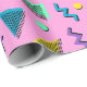 Belo e brilhante, este papel de embrulho apresenta um design anos 80 com formas coloridas sobre fundo rosa. A impressão é vibrante, afiada e viva. Disponível em vários estilos e texturas. Faça seu pedido hoje mesmo!