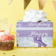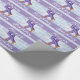 Dançarina de linha botas de vaqueiro embrulhando papel de presente com texto de aniversário feliz.