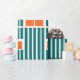 Este papel de embrulho tem uma design moderna do século médio feita de cinco linhas lacrimogêneas e retângulos laranja repetidos na design.