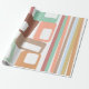 Este papel de embrulho tem uma design de linhas e retângulos modernos do século médio em tons retrorados de vermelho, amarelo, laranja, azul, verde, marrom e rosa.