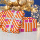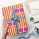 Papel De Presente Linhas Laranja e Caixas Rosa
