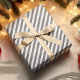 Papel De Presente Listras Brancas Cinzas Dourado Texto Natal Anivers