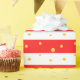 Listras vermelhas e brancas com papel de embrulho de presente do ouro bolinhas.
