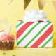 Bandas de vermelho vivo e verde num papel branco de embrulho de fundo, na diagonal de um efeito canadiano