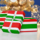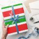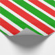 Um papel de envolvimento modelado listrado vermelho, verde, e branco brilhante para o feriado do Natal que qualquer um em toda a idade pode apreciar.