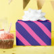 Um fúcsia brilhante e um papel de envolvimento listrado roxo.