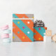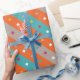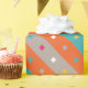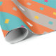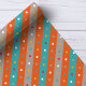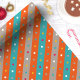 Adicione um toque de diversão geométrica ao seu presente com este vibrante papel de embrulho. Listras ousadas em laranja e azul dançam ao lado de pontos de confete divertidos em tons de cinza, criando uma atmosfera festiva. Perfeito para aniversários, formaturas ou qualquer ocasião digna de celebração.