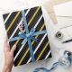 Projetado para combinar com nossa Coleção de Ano Novo Preta e Dourada, este papel de embrulho listrado dourado e branco em fundo preto é perfeito para embrulhar aqueles presentes de Ano Novo!