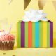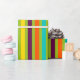 Este papel de envolvimento brilhante caracteriza listras corajosas nas máscaras de verde, de roxo, de alaranjado, de azul e de amarelo de nossa paleta de cores retro nova.