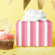 Papel de embrulho listrado de rosa e branco.