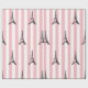 Papel De Presente Listras rosadas tema torre Eiffel Paris