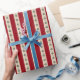 Listras verticais e listras de flores – padrão listrado vermelho e creme branco.