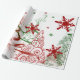 Lindas Árvores Vermelhas e Verdes de Natal, Flocos de Neve e Estrelas Brancas em fundo branco. Escolha Papel de ondulação brilhante, Papel de enrolamento de linen ou Gloss de fotos.