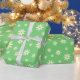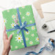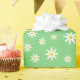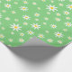 Um padrão de flores margaridas brancas com anéis amarelos em verde.
