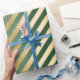 Papel De Presente Livro Verde Dourado Strips de Natal