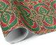 Papel De Presente Livro Verde Vermelho sobre Natal Dourado