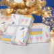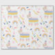 Este papel de embrulho bonito e moderno apresenta lhamas e arco-íris em cores pastéis. É o papel perfeito para um presente de chá de fraldas ou aniversário de uma criança.