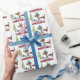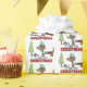 Um belo churrasco vestindo um suéter e um chapéu tricotado fica ao lado de uma árvore de Natal alta e fina decorada com bolas de tênis e um longo presente. Brincadeiras bonitas na imagem de palavras, "Eu desejo o Natal". Design original de Christie Black of Creations do Coração.