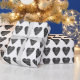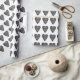 Unique black and white wrapping paper with heart shaped chalkboard pattern with the handwritten word "love".