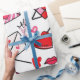 Enrole seus presentes em romance com esta carta de amor papel de embrulho de rabisco. Com envelopes, corações e beijos em um padrão perfeito, esta design é perfeita para o Dia do Namorados, noivados e aniversários.